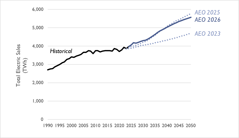 Future load from data centers remains high in AEO 2026, while transport electrification is highly policy dependent