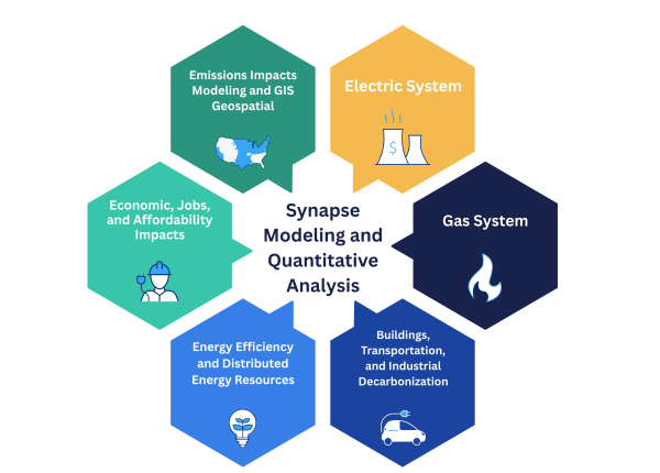 Synapse modelers run industry-standard models and publicly available tools when these resources are the best fit for the task. We also develop models in-house for specific applications, either to complement the capabilities of other models or to use exclusively.
